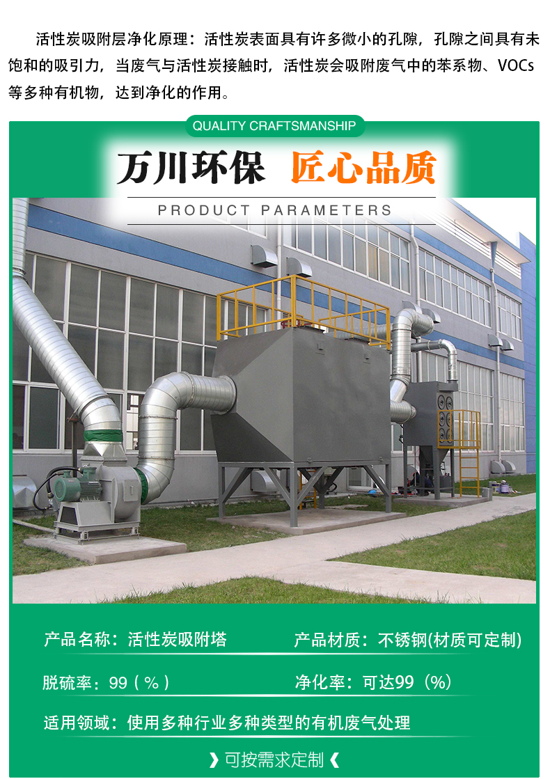 簡介:活性炭被廣泛應用于工業(yè)上,再后來發(fā)明了活性炭吸附塔。活性炭吸附裝置是利用活性炭的原理設計而成的,活性炭表面具有許多孔隙,這些孔隙之間存在著吸引力,當廢氣與活性炭接觸時,可以吸附廢氣分子,所以在很多工廠都會看到活性炭吸附塔的身影。