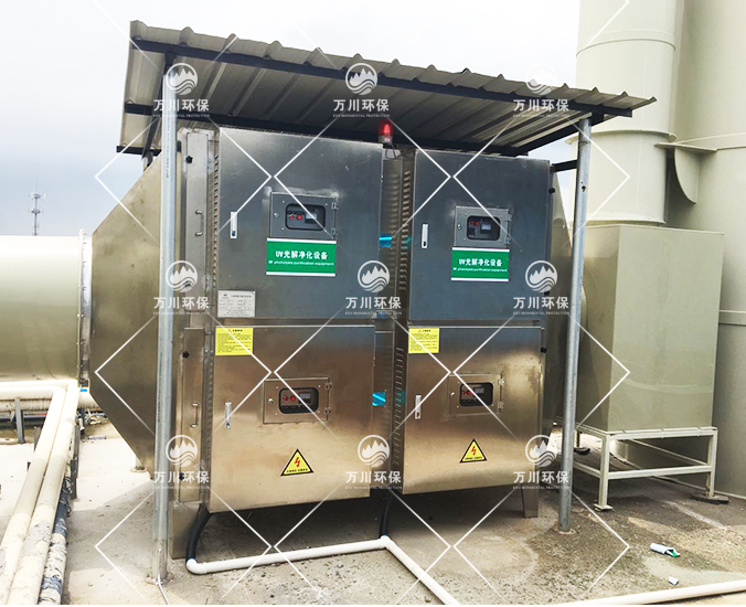 由于廢氣中含有一定的顆粒物,因此廢氣首先進(jìn)到噴淋塔在進(jìn)一步除去顆粒物和水溶性物質(zhì),而后進(jìn)入到除霧器,過濾未完全凈化水分,而后進(jìn)入UV光氧凈化器,最后再進(jìn)行活性炭吸附裝置,該法具有處理效果高,運行穩(wěn)定優(yōu)點。