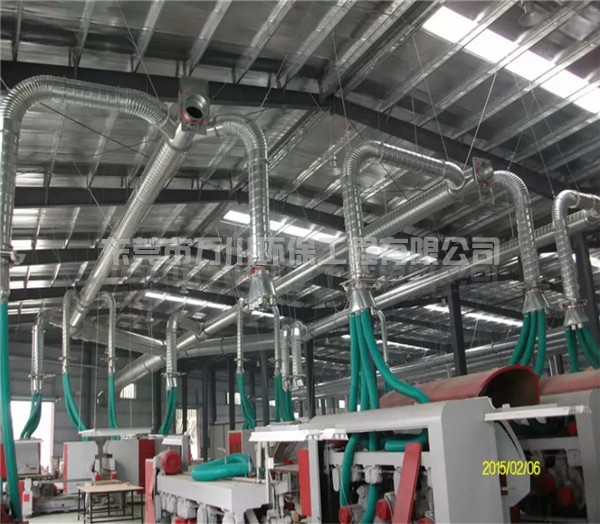 該系統(tǒng)的風管為不銹鋼材質(zhì),法蘭連接,部分風管架空在生產(chǎn)機器上方。
