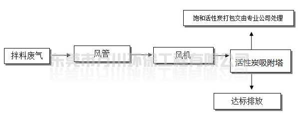 拌料固化產(chǎn)生的屬于揮發(fā)性的有機(jī)廢氣,通過(guò)車間內(nèi)合理布管,由引風(fēng)機(jī)抽至車間外處理后排放,處理能力為18000m3/h,系統(tǒng)設(shè)于車間樓頂。