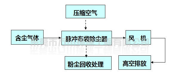 根據(jù)榮科公司的實際情況和以往的案例經(jīng)驗,我們技術(shù)人員依據(jù)國家及地方關(guān)于環(huán)保的法律和法規(guī)、工業(yè)企業(yè)設(shè)計衛(wèi)生標(biāo)準(zhǔn)(TJ36-79)、《廣東省大氣污染物排放標(biāo)準(zhǔn)》(DB44/27-2001)、《三廢治理工程技術(shù)手冊》廢氣卷,經(jīng)過對廢氣污染物和現(xiàn)有的處理技術(shù)的綜合分析,認(rèn)為該廠所產(chǎn)生的粉塵適合采用干式除塵法,所以我們?yōu)闃s科公司設(shè)計了一套風(fēng)量為35000m3/h脈沖布袋除塵器。